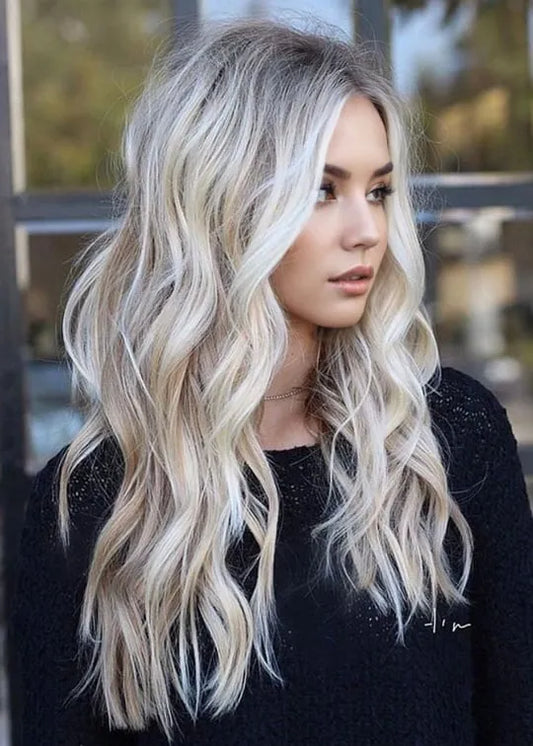 Money Piece Hair Women Long Wavy Synthetic Capless Wigs 22 Inches