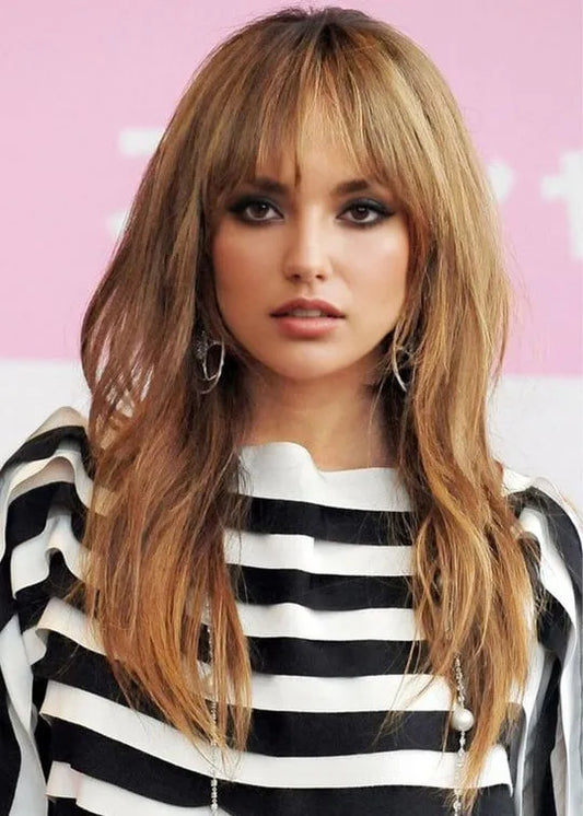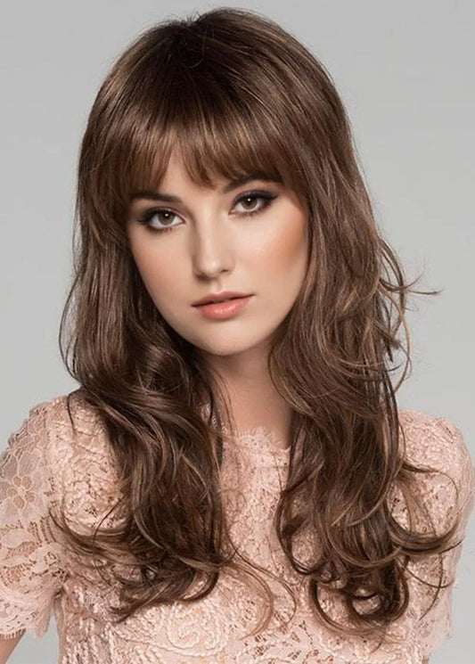 Big Curly Layered Hairstyle with Full Fringe Middle Length Synthetic Capless Women Wigs 24 Inches