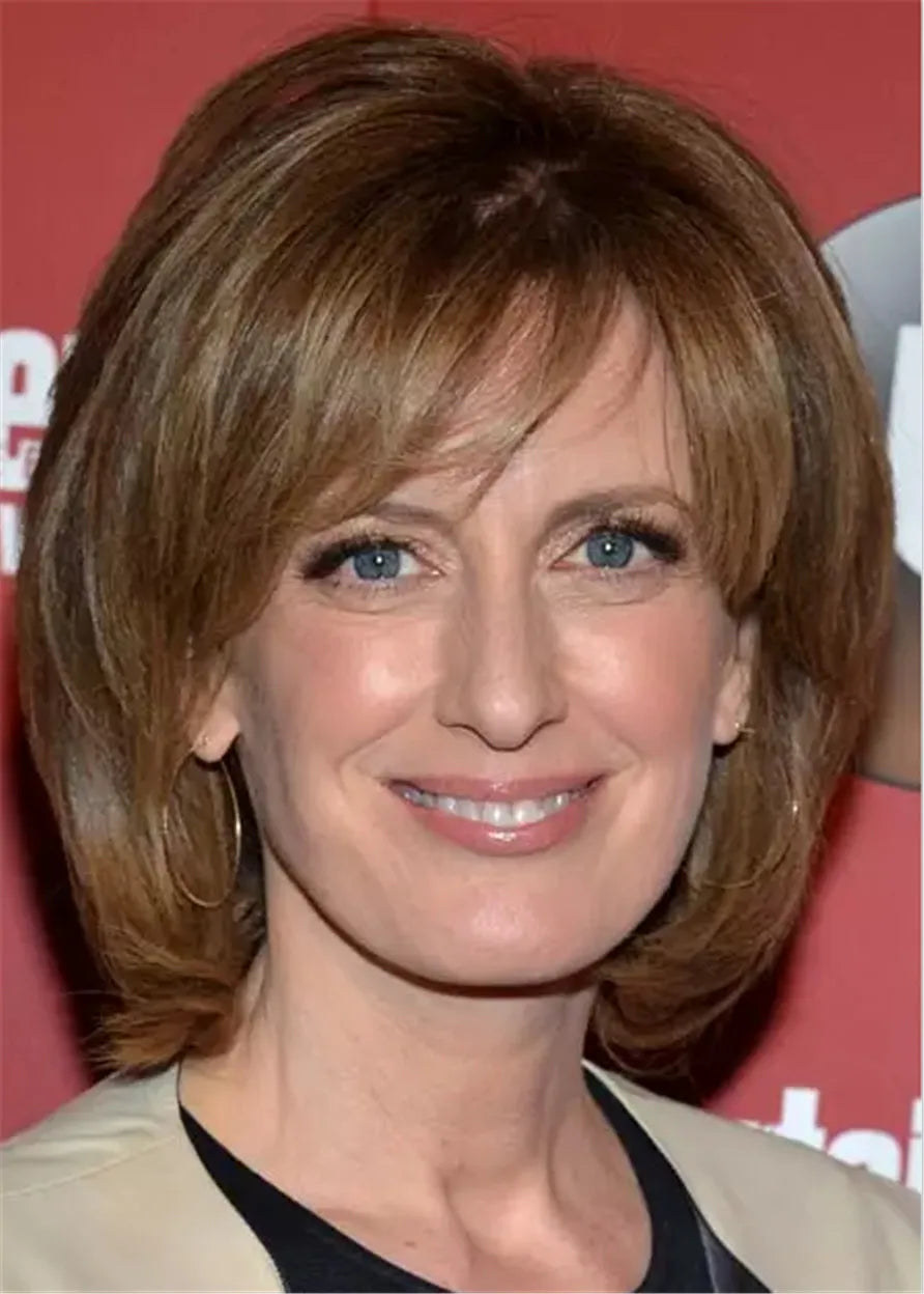 Curved Bob Natural Straight Human Hair With Graduated Fringes Capless Wigs 14Inch