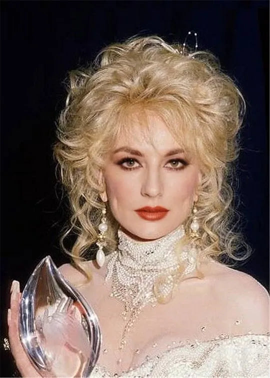 Dolly Parton Frisur chaotisch feminine Schichten goldene gewellte Kunsthaarperücken 16 Zoll