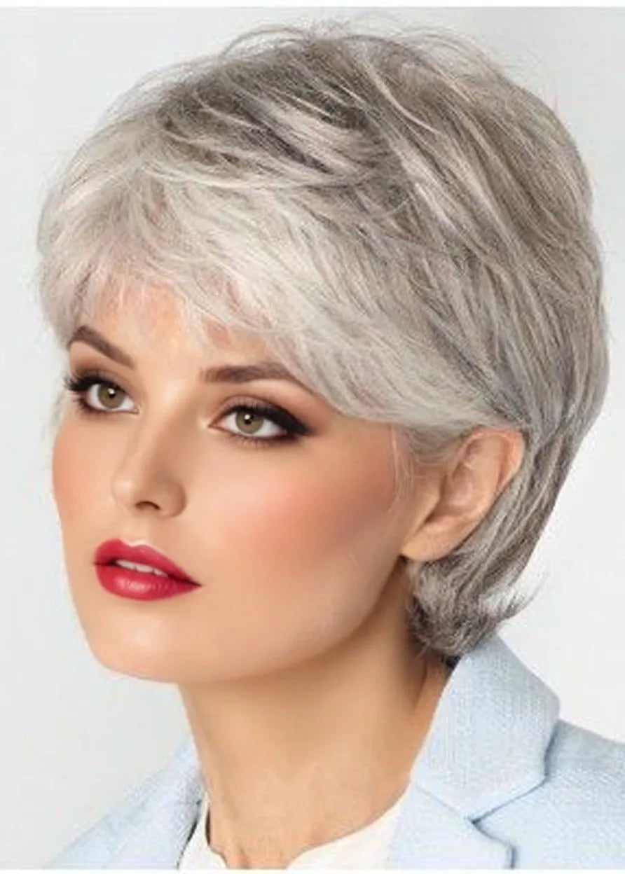 Graue geschichtete, tief gewellte Lace-Front-Perücke aus Kunsthaar, 10 Zoll