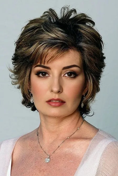 Gestufte Kunsthaar-Perücken, kurz, gewellt, 20 cm, ohne Kappe, für ältere Frauen