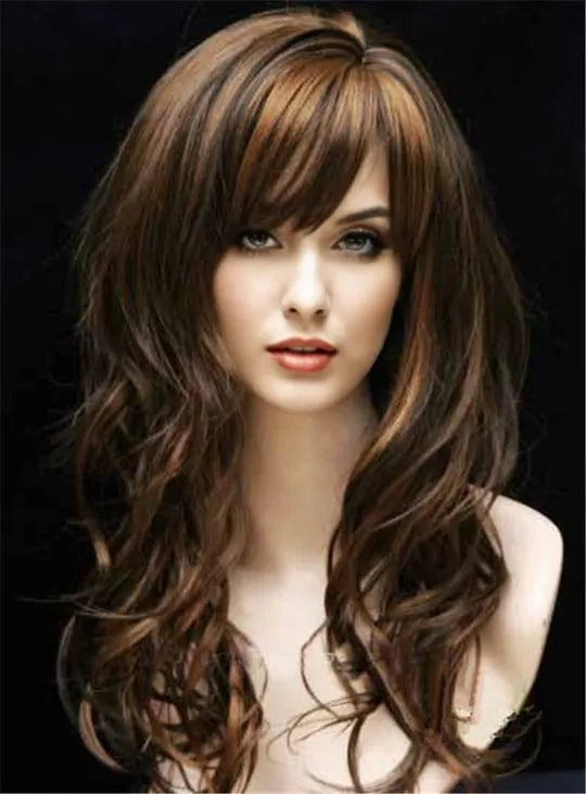 Lange lockige synthetische Perücke mit vollem Pony ohne Kappe für Frauen, 22 Zoll