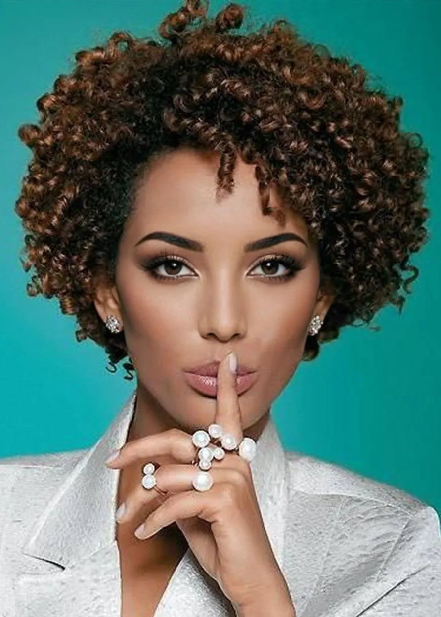 Natürlich aussehende Afro-Perücken für Damen aus Kunsthaar, 10 Zoll