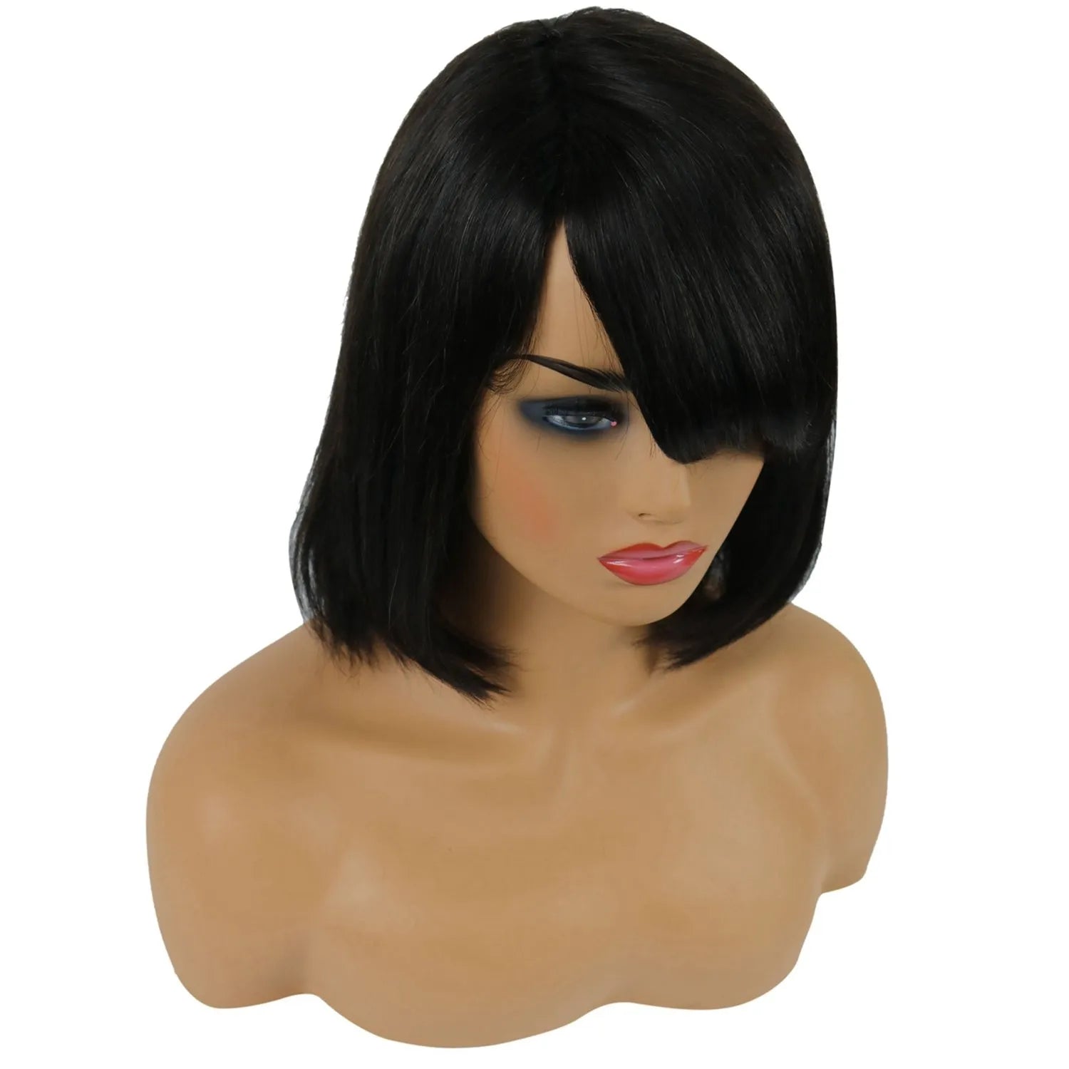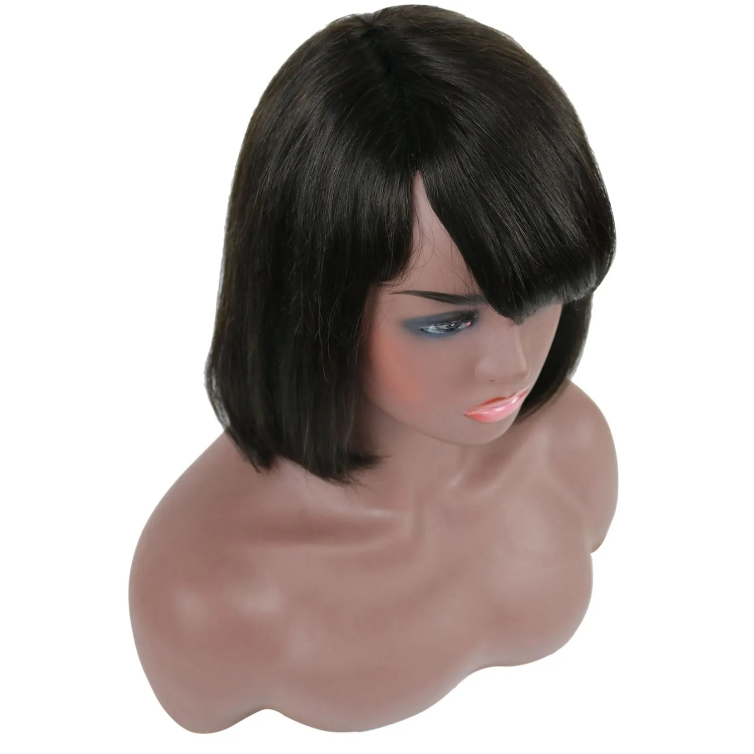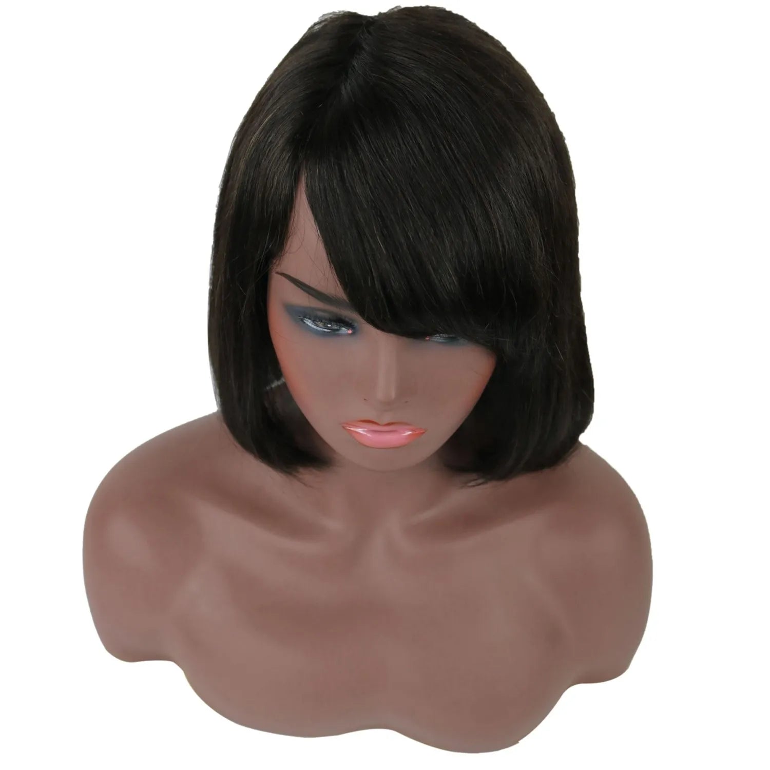 Taraji Henson Kurze, glatte Bob-Frisur, Echthaar, kappenlose Perücke, 10 Zoll