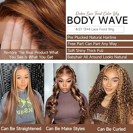 Parrucca frontale in pizzo Ombre Capelli umani 13x4 4/27 Parrucca frontale in pizzo con mèches Capelli umani Parrucca biondo miele