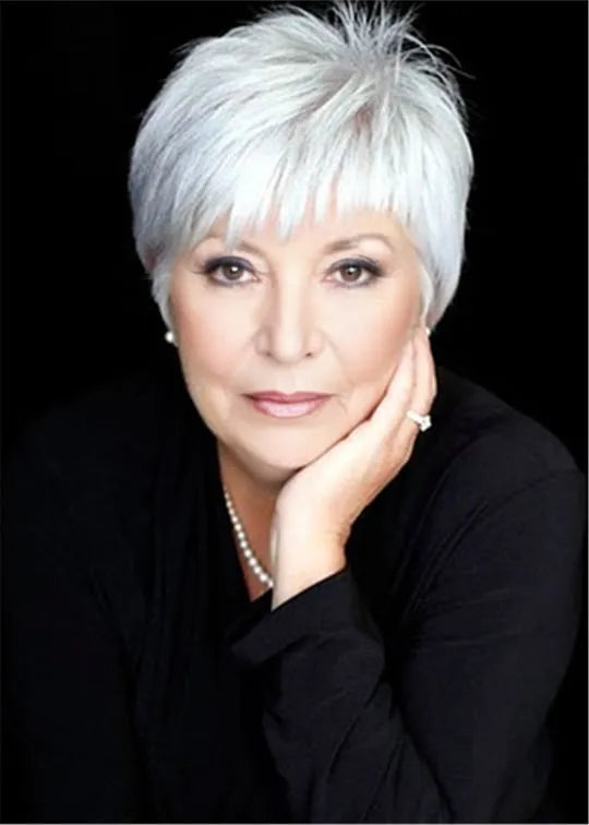 Tagli di capelli Pixie per donne anziane Parrucche di capelli umani lisci naturali da 6 pollici