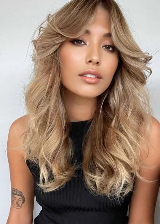 Acconciature Shaggy da donna, lunghe, ondulate, sintetiche, senza cappuccio, parrucche da 22 pollici