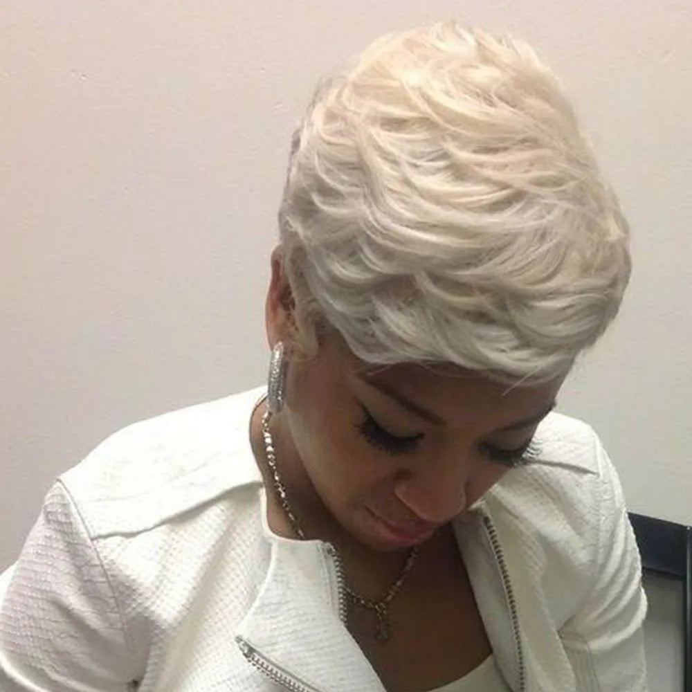 Boy Cut Hairstyle Wavy Human Hair Women Capless Wig 8 Inches