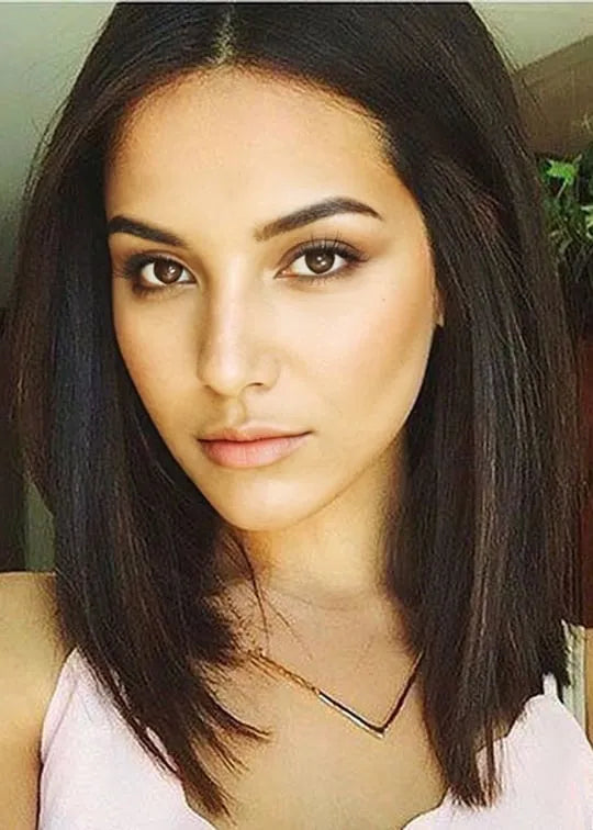 Classical Bob Natural Straight Medium Length Synthetic Hair Capless Wigs 16Inches