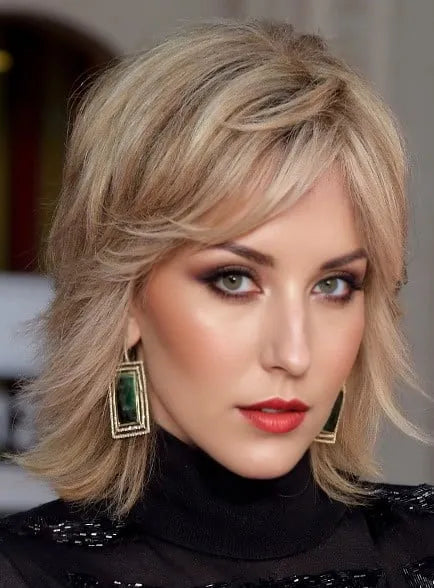 Jane Fonda Fluffy Medium Wavy Human Hair Capless Wigs 12 Inches